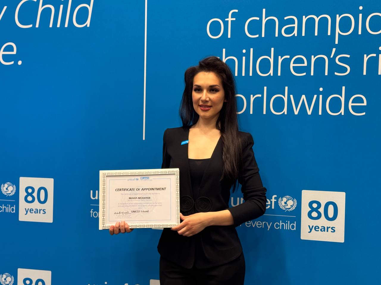 Торжественный вечер, посвящённый официальному назначению Марии Мудряк другом ЮНИСЕФ, состоялся 7 апреля в Астане. На мероприятии присутствовали представители ООН, дипломаты, сотрудники казахстанских министерств, общественные деятели и журналисты.