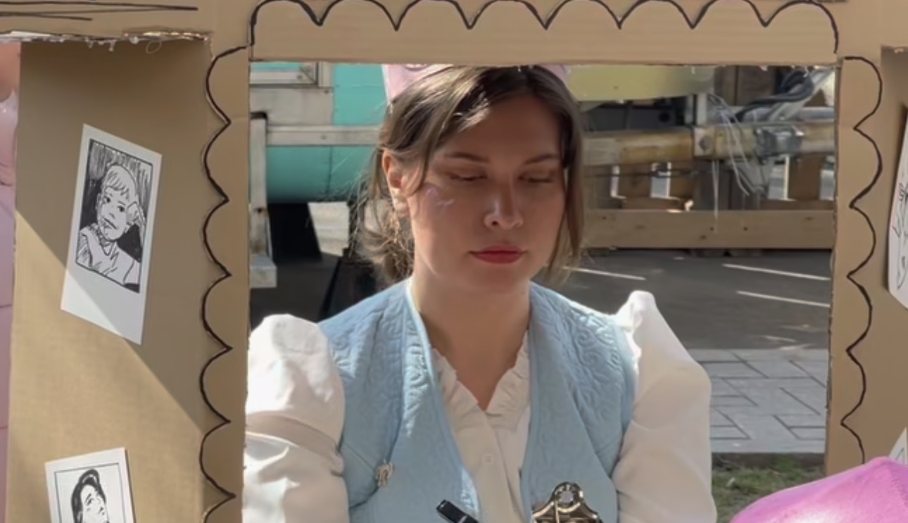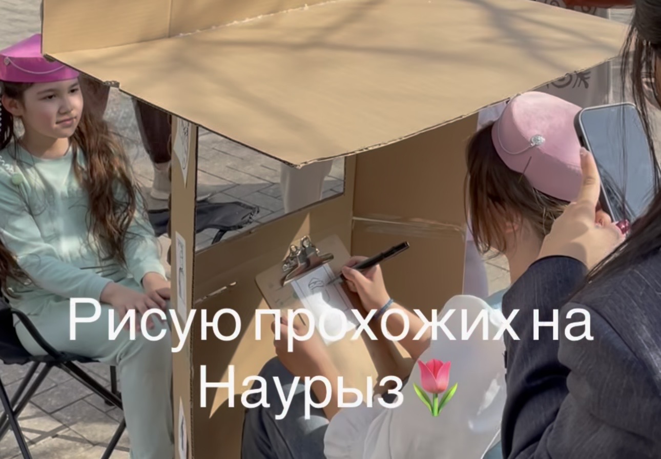 Художница Дарья Синёва устроила необычный перформанс во время празднования Наурыза. 21 марта она соорудила картонную «фотобудку» и рисовала людей на аллее Панфилова в Алматы.