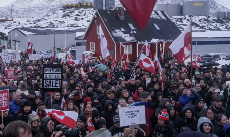 В момент завершения шествия стало известно, что Дональд Трамп объявил о введении 10-процентных пошлин на товары из восьми европейских стран с февраля — в ответ на их несогласие с планами США в отношении Гренландии.