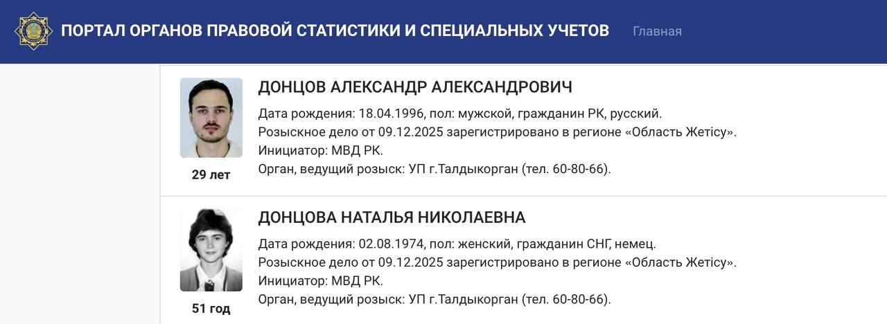 В декабре прошлого года МВД Казахстана объявило в розыск Наталью Донцову и Александра Донцова. Родные Сайлыбаевой утверждали, что они скрываются в России.