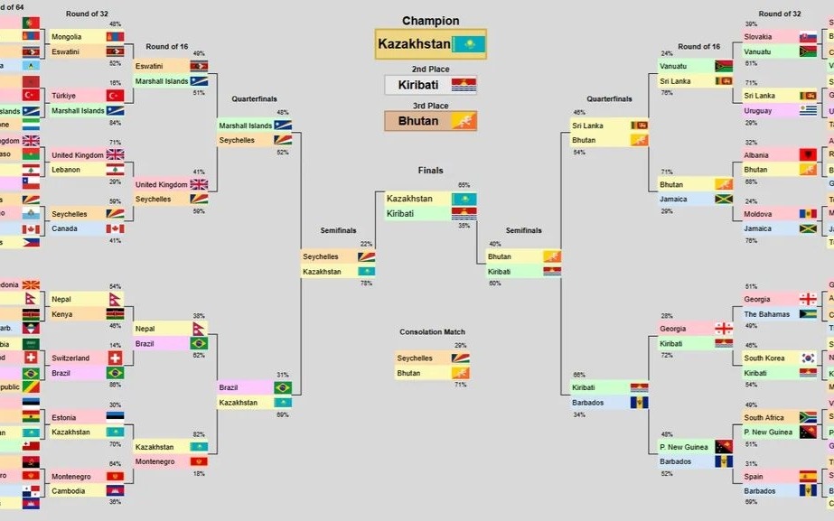 – жартылай финалда — Сейшел аралдары (78%)