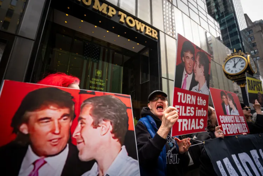 Нью-Йоркте-те наразылық білдірушілер Trump Tower ғимаратының алдында «Құрбандарға сеніңіздер» атты акция өткізді. Бұл шара АҚШ Әділет министрлігі жариялаған Federal Bureau of Investigation құжаттарынан кейін ұйымдастырылды. Онда әйелдердің бірі Дональд Трамп өзіне кәмелетке толмаған кезде жыныстық зорлық көрсетті деп айыптағаны туралы мәліметтер бар.